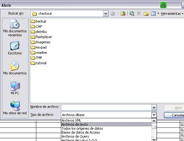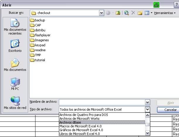 Abrir, utilizando Excel, la base de datos "proveedores.dbf". Ir al menú "Archivo - Abrir". Luego seleccionar el tipo de archivo que queremos abrir de la lista desplegable, en este caso elegir "Archivos dBase", localizar el archivo "proveedores.dbf", seleccionarlo y por último presionar el botón Abrir.