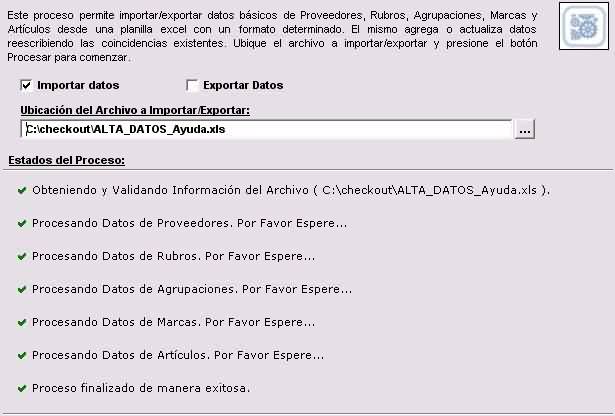 Al finalizar la importación, presionar el botón salir para continuar trabajando.