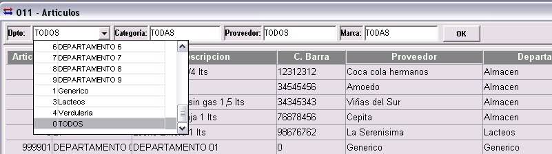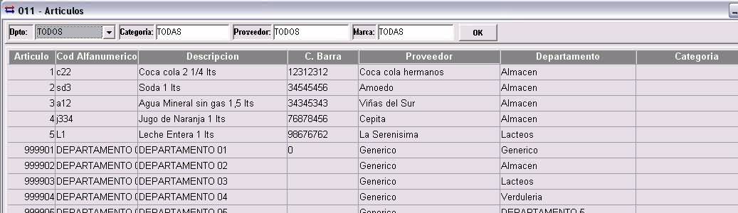 Para poder visualizar los datos verificar que los filtros de Departamento, Categoría, Proveedor y Marca estén indicando listar TODOS los productos.