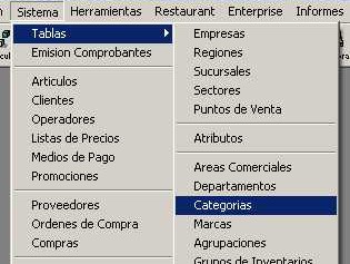 Ingresar al menú "Sistema - Tablas - Categorías" de la barra de menú.