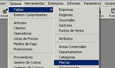 Acceder al menú "Sistema - Tablas - Marcas" de la barra de menú del Checkout Store Backoffice.
