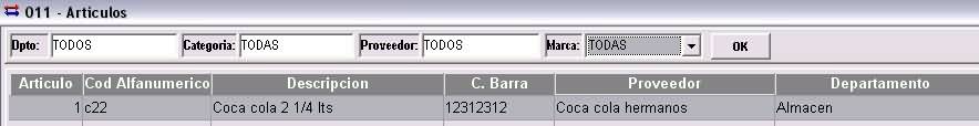 En la parte superior de la tabla veremos una serie de datos con un cuadro de texto a su derecha, estos son los filtros del selector de artículos.