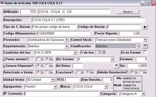 Ingresar el número 100. Junto al código tenemos una descripción abreviada, en esta ítem ingresar COCA COLA x LT.