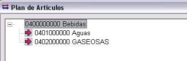 Desplegaremos las sub-clasificaciones de artículos dando un clic con el mouse sobre el signo + de la clasificación BEBIDAS..