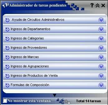 Al abrir el Checkout Store Backoffice, automáticamente aparece la lista de tareas. En el caso que el usuario no desee que esto continúe sucediendo, tiene la posibilidad de hacer un clic en el CheckBox "No mostrar esta ventana".