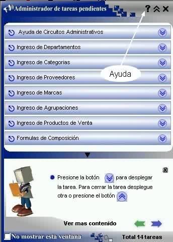 La lista de tareas tiene su propia ayuda y para acceder a ella el usuario debe hacer un clic sobre el botón ?. Al presionar sobre el botón, se desplegará la ayuda en la parte inferior de la lista de tareas.