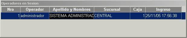 En la misma ventana de "Inicio/Cierre de Jornada", se pueden visualizar los operadores que se encuentran en sesión en ese momento. En el caso que se encuentre alguno de los operadores en sesión, no se podrá cerrar o iniciar jornada (los botones no están visibles).