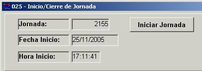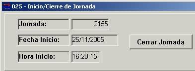 - El inicio y cierre de jornada se encuentran en la misma ventana. Los botones correspondientes a estas funciones se habilitan o deshabilitan según este o no iniciada una jornada.