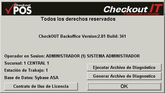 A fin de diagnosticar problemas y solucionar los mismos, el sistema dispone de un menú para ello. Este se encuentra ubicado en el menú "Ayuda - Sobre Backoffice...".