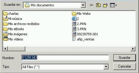 Presionando el botón correspondiente, el sistema le solicitará que indique un ruta y un nombre para dicho archivo; una vez establecidos, utilice el botón Guardar, para grabar el mismo. El archivo generado debe ser enviado al proveedor de su software para diagnosticar y solucionar el inconveniente.