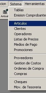 Ingresamos al Sistema de Administración Checkout Store Backoffice y de allí a artículos desde el menú "Sistema - Artículos" de la barra de menú, o por medio del icono de acceso directo ARTÍCULOS de la barra de herramientas.