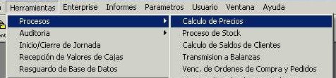 Al terminar de modificar los precios, vamos a ejecutar el proceso de cálculo de precios, para que los precios se pongan en vigencia. Para ello ingresamos al menú "Herramientas - Calculo de precios" de la barra de menú.