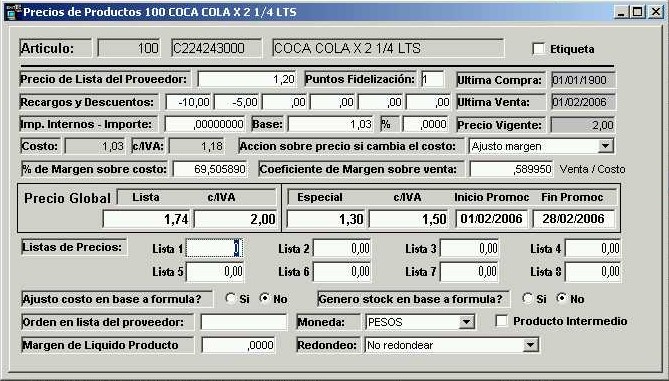 A la vez, podemos definir que el precio global no nos convence y decidimos que el precio al público (Precio Global C/IVA) será de $ 2,00.