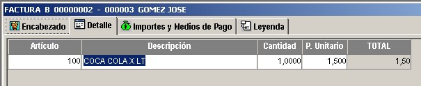 Al agregar el artículo 100 en el detalle de un comprobante de venta, notaremos que el precio que muestra es el establecido en el paso anterior para la sucursal CENTRAL.