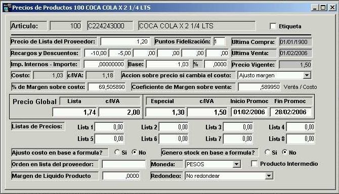 Para cada artículo, se puede configurar varios tipos de redondeo de precios: