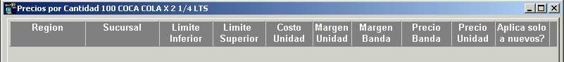 Nos posicionamos en el artículo "100 – COCA COLA 2 1/4.LTS" y presionamos el botón PRC x CANT de la barra de herramientas. Otra forma de acceder a esta opción, es desde el menú "Artículos - Precios por Cantidad" de la barra de menú.