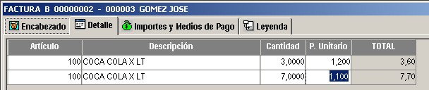 Si facturamos el artículo vamos a notar las diferencias en los precios de venta según la cantidad ingresada.