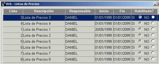 Las listas de precios permiten la implementación de políticas comerciales pro-activas, pudiendo incentivar la venta en determinados horarios, sectores y rubros. Las mismas, entran en vigencia y finalizan en forma automática, para una o todas las sucursales que Ud. configure; se pueden manejar precios para formatos de local o regiones por separado. Además manejan precios de canasta de ofertas con la fecha de inicio y fin de la promoción.