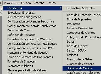 Acceder al menú "Parámetros - Parámetros - Unidades de Medida" de la barra de menú.