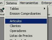 Para asociar un artículo con una unidad de medida: Acceder al menú "Sistema - Artículos" de la barra de menú.