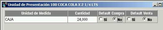 Presionar el botón Nuevo o la tecla F3 para ingresar una nueva unidad de presentación para este producto e ingresar los siguientes datos: