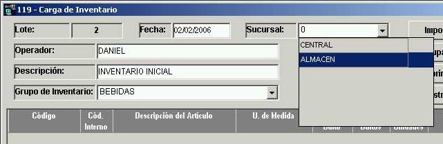Hacer un clic con el mouse sobre el campo "Sucursal" y seleccionar de la lista desplegable la opción ALMACÉN.