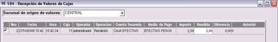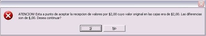 Se presentará le ventana "Recepción de Valores de Caja".