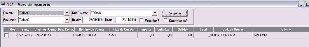 Para visualizar los valores recibidos acceder al menú "Sistema - Mov. de Tesorería" de la barra de menú.