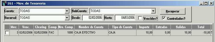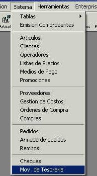 Acceder al menú "Sistema - Mov. de Tesorería" de la barra de menú.