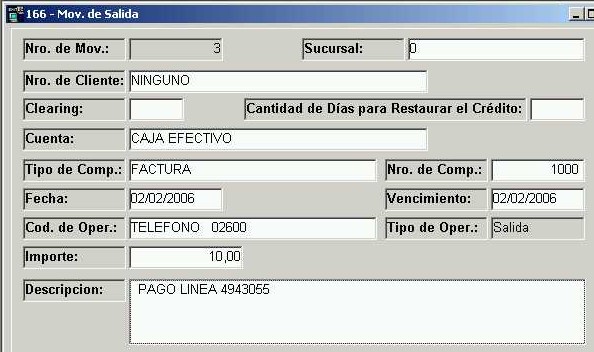 En el siguiente ejercicio se imputará una salida de caja en efectivo, para realizar el pago de una factura de teléfono.