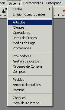 Ingresamos en el Checkout Store Backoffice al menú "Sistema - Artículos" de la barra de menú o presionamos el botón ARTÍCULOS de la barra de herramientas.
