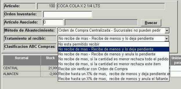 En el campo "Tratamiento al Recibir", podemos configurar el método de recepción del artículo. Las opciones son: