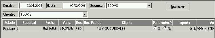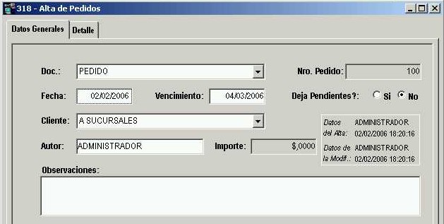 Luego de guardar el pedido, este queda almacenado y se puede ver en el menú "Sistema - Pedidos" de la barra de menú.