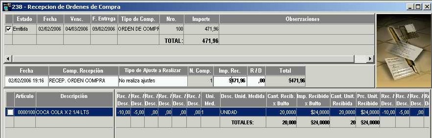A continuación realizaremos un ejemplo de una recepción de orden de compra: