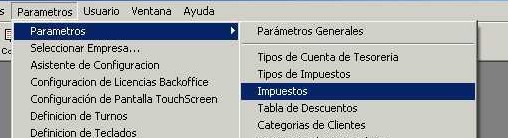 Ingresamos en el Checkout Store Backoffice al menú "Parámetros - Parámetros - Impuestos" de la barra de menú.