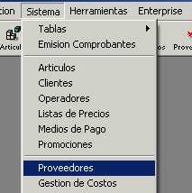 Ingresamos en el Checkout Store Backoffice al menú "Sistema - Proveedores" de la barra de menú o presionamos el botón "Proveedores" de la barra de herramientas.