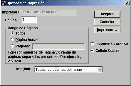 Para terminar presionamos el botón Guardar o la tecla F10, el sistema nos presenta el cuadro de dialogo de impresión que permite imprimir el comprobante.