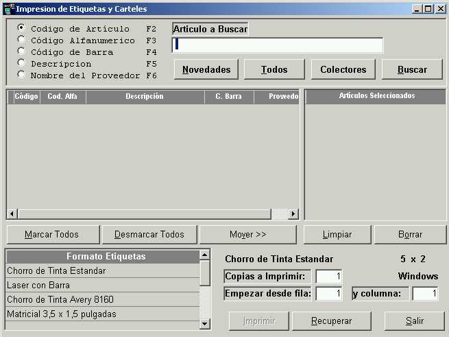debe seleccionar el formato de etiqueta que se va a imprimir, seleccionar