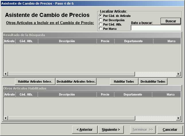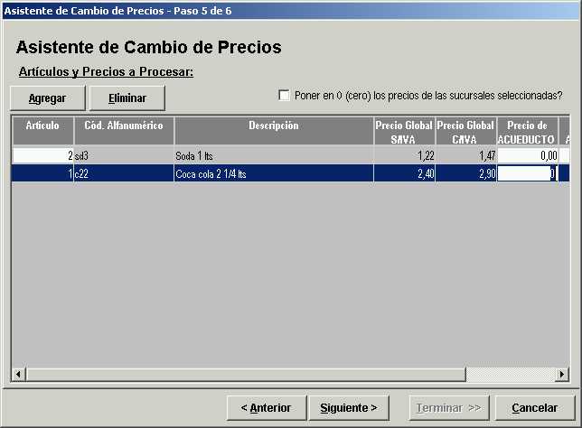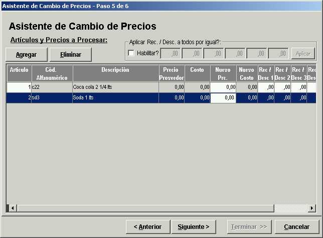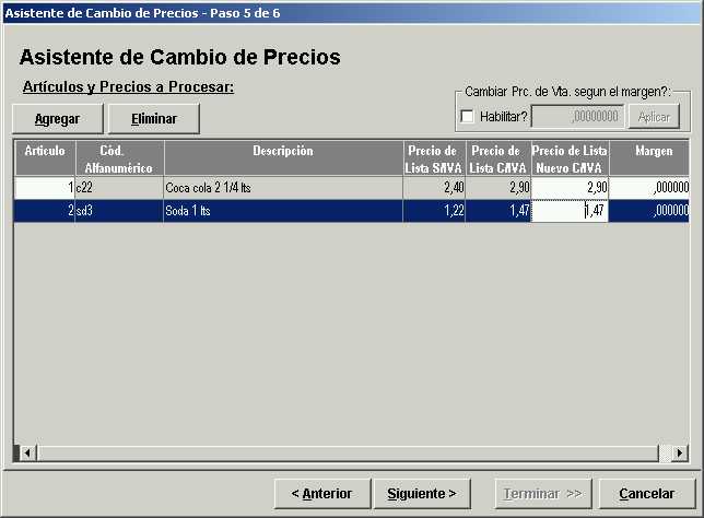 Al seleccionar este tipo de cambio de precio, luego en el paso 5 del asistente, se debe ingresar en forma manual el precio de cada artículo incluido en la selección.