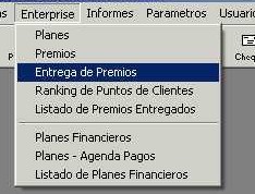 Se accede desde el menú "Enterprise - Listado de Premios Entregados" de la barra de menú. El listado muestra los premios entregados a cada uno de los clientes.