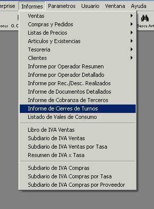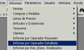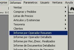 Se accede desde el menú "Informes - Informe por Operador Resumen" de la barra de menú. Este informe muestra los totales de las ventas de los operadores.
