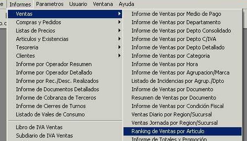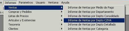 Se accede desde el menú "Informes - Ventas - Informe de Ventas por Departamento C/IVA" de la barra de menú. Este informe lista todos los artículos que fueron vendidos, detallando para cada uno de ellos la cantidad vendida y el precio de venta (precio C/IVA) como datos más importantes. Los artículos son mostrados agrupados por departamento (rubro).